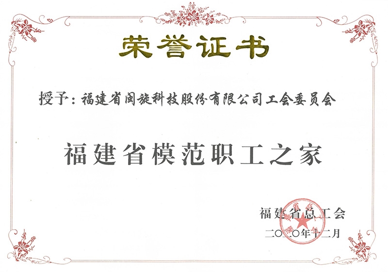 福建省圭表职工之家荣誉证书